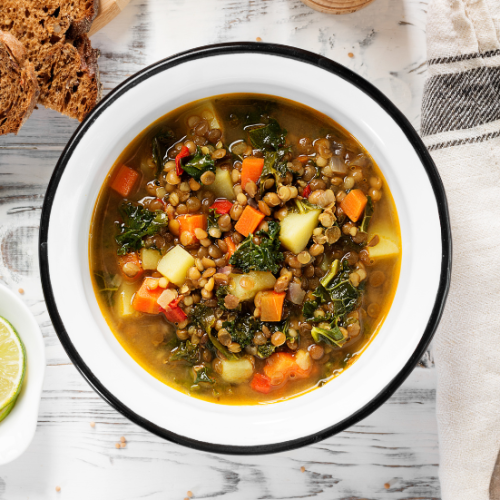 - Add the lentils and broth to a pot and bring to boil. Let simmer over medium heat for about 30 minutes.